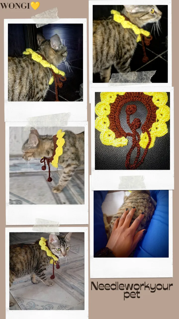 With that, I was done with the crochet pet collar which made Lucy look like a sunflower 😄. I'm stoked at the fact that I'm now a pet grandmother. I guess I'd be making crochet kitty toys soon enough.