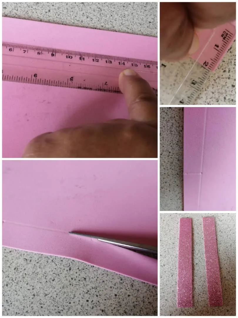 Mark on the Foami 2 strips of 2 centimeters wide by 14 centimeters long.