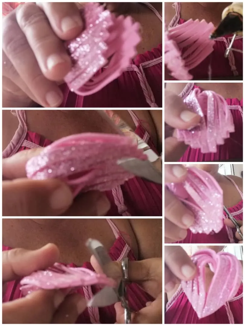 The two parts are joined at the bottom, making sure they are well glued and with a scissors cut in the shape of a heart at the bottom