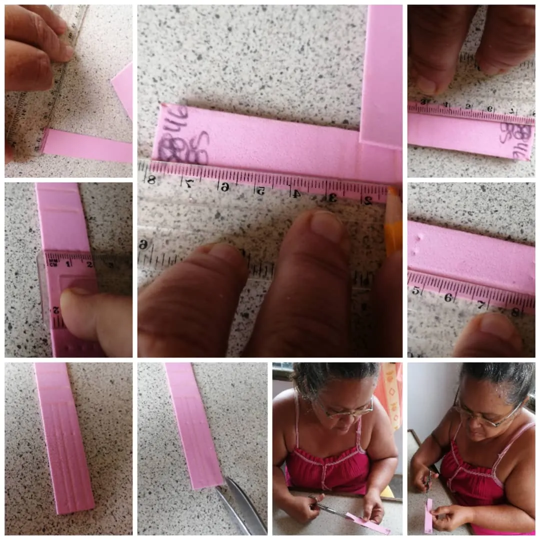 Se marcan en el Foami 2 tiras de 2 centímetros de ancho por 14 centímetros de largo.
