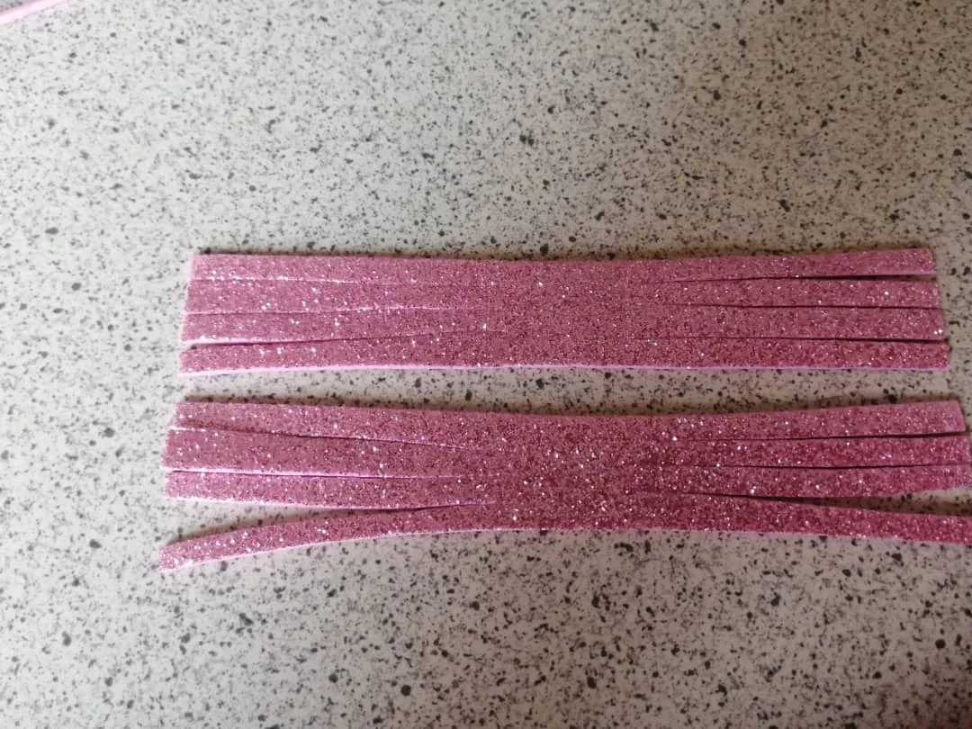 Echo this begins to glue each strip of the cut one side from right to left and the other side from left to right this so that the center is the same length, it is like steps, echo this are joined in the middle, silicone is poured in the middle on the right side at the top and on the reverse side is cut at one.