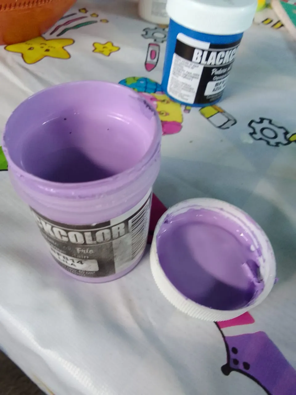 1. Pinté las tapas, porque es necesario utilizar la parte de abajo del cartón, y lo hice teniendo en cuenta cómo son las figura del tetris. Utilicé tres colores (azul rey, lila y blanco).