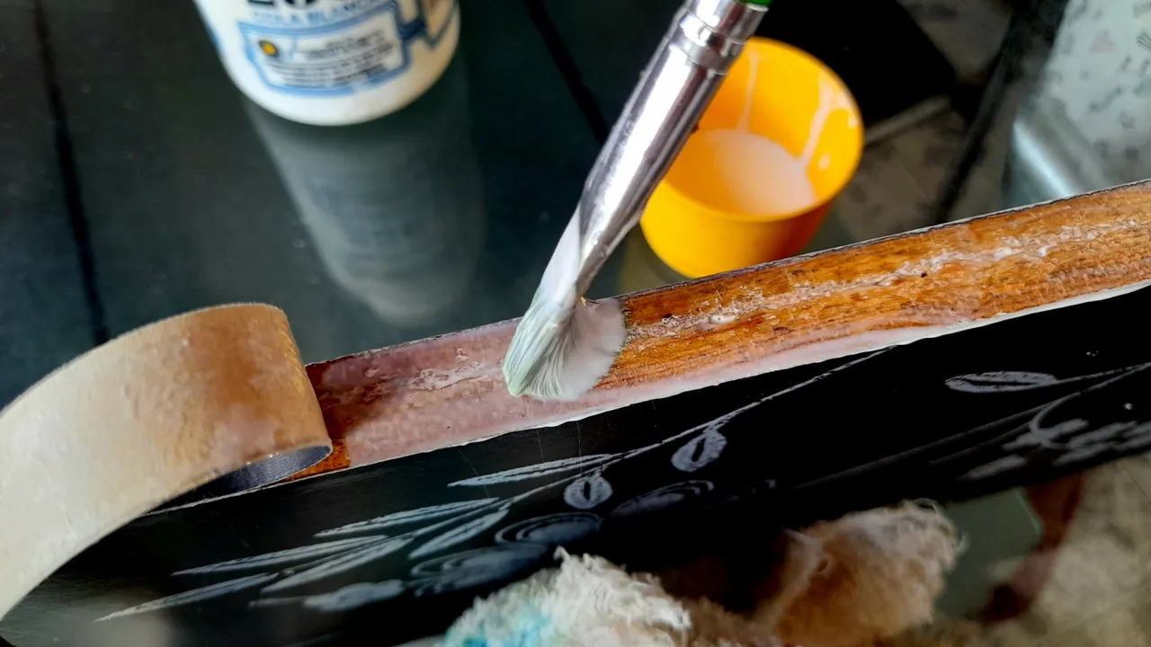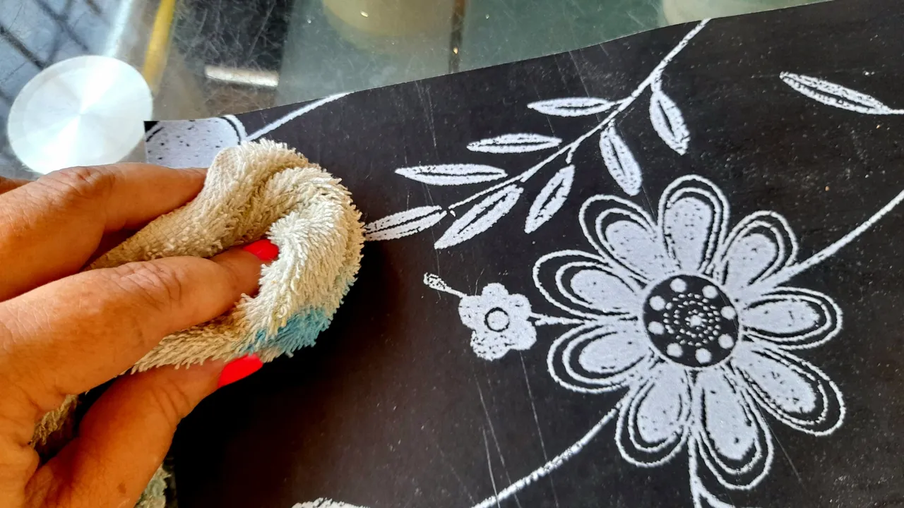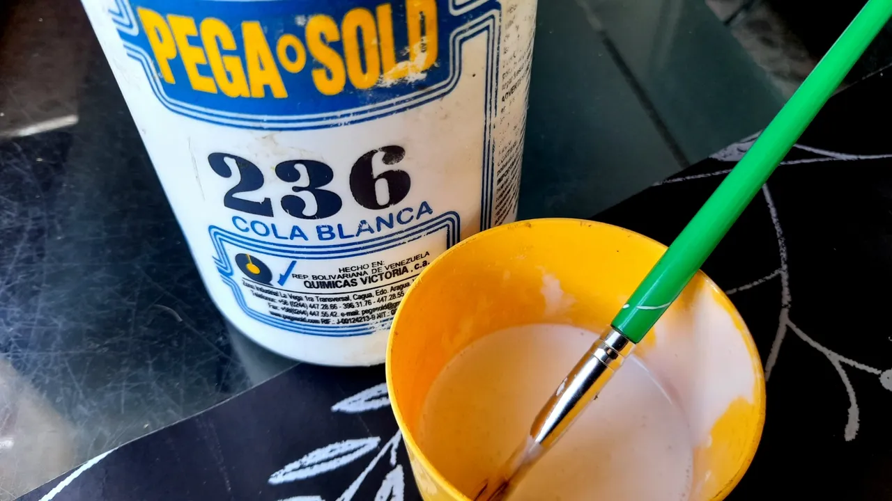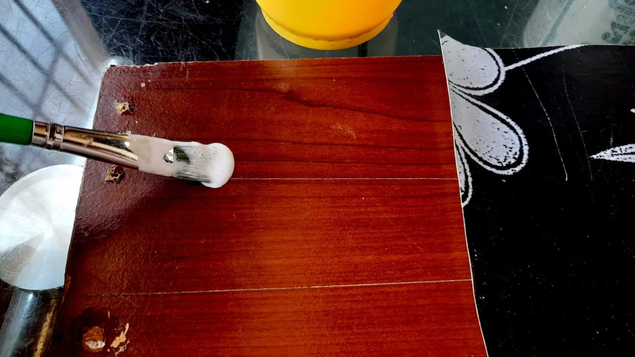 Then with the brush I spread the glue on the board, to finally place the paper and with the help of a cloth which I passed over the entire surface I made sure to stick it very well and that there were no air bubbles.