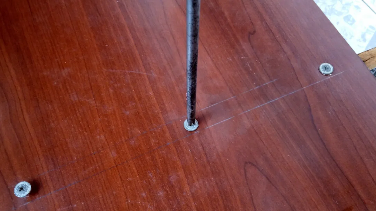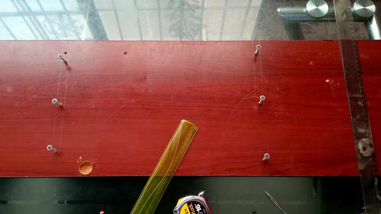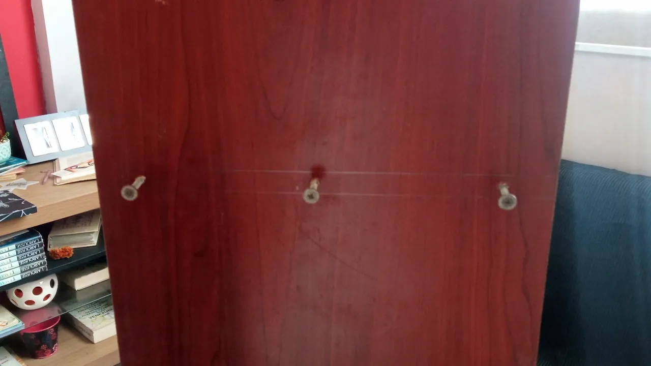 At this point I needed my husband's help to fix the shelves, each one with three screws, which are usually used for wood, and while I held the boards, he was in charge of placing the screws and fixing each shelf.