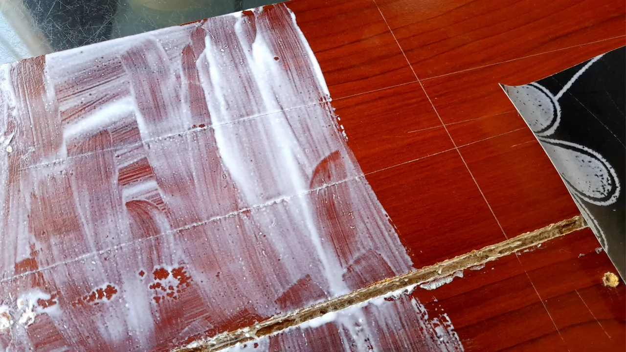 Seguidamente con el pincel esparcí la pega sobre la tabla, para finalmente colocar el papel y con ayuda de un paño el cual pasé por toda la superficie me aseguré de pegarlo muy bien y que no quedaran burbujas de aire.