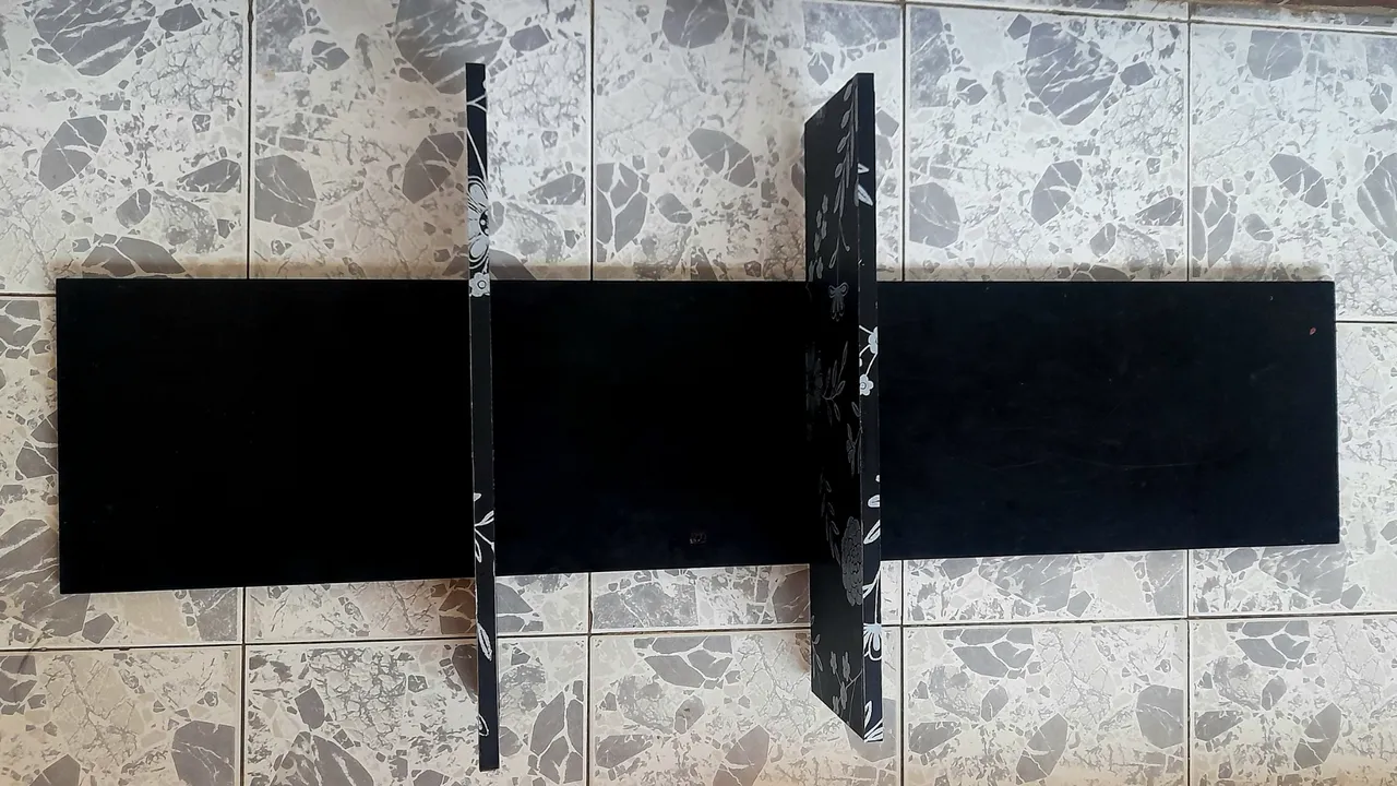 This shelf at first would be completely different from how it ended up, because at first the plan was to make a hanging shelf, for which I would need the two front parts of a drawer and some ribbons that I would make with a black fabric that I had at home.