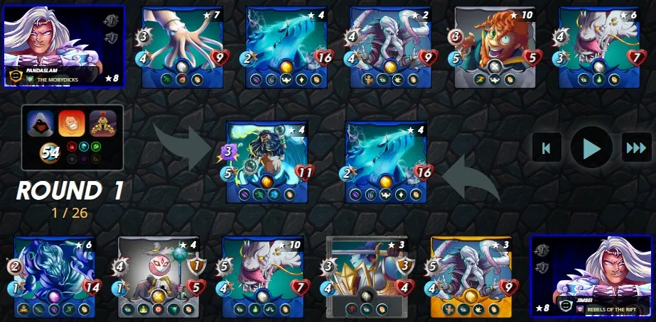 Interestingly, my opponent made a similar choice by selecting the Water Splinter for this encounter, further demonstrating the popularity of the Water Splinter among players in Splinterlands. However, my opponent's downfall was the absence of a Wave Brood in their lineup, unlike the strategic inclusion of Wave Brood in my team. The absence of Wave Brood's Taunt ability left the opposing monsters vulnerable, and they were swiftly dismantled by my team consisting of OPPORTUNISTIC
