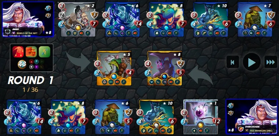 When confronted with a Going the Distance ruleset, my instinct is to choose Quix the Devious due to the valuable -1 Range debuff. This debuff is particularly effective in battles where all monsters have Ranged attacks. However, since the Dragon Splinter is prohibited in this specific battle, I have opted for Kelya Frendul. Kelya Frendul grants beneficial attribute buffs, including +1 Armor and +1 Speed, and allows the utilization of the Water Splinter, which offers a wide selection of excellent Ranged monsters 😁