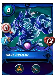 I finished off my team with some more premium picks. Axemaster is an amazing source of ranged damage, Double Striking twice per turn for a total of 4 damage. His low health means that he may not be around for very long, but I was hoping that he would be able to put some serious hurt on the opposing team. Finally, Wave Brood was there as one final tank. Thanks to Taunt, the enemy monsters would be forced to attack it and leave the rest of my team (relatively) untouched.