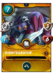 For the middle of my lineup I went with Pelacor Mercenary and Disintegrator. Pelacor Mercenary was another hard hitting and solid tank. With Flying, he even has a bit of evasion. Disintegrator was a key monster on my team - the combination of Demoralize and Thorns means that the enemy monsters will be hitting for less damage, as well as taking counterhits every time they attack. My strategy for this battle was to select the tankiest monsters I could find, protect Disintegrator, and let Thorns do the rest.