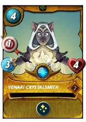 The middle of my lineup had a bit of support and a bit of backup tanks. My hope was that Supply Runner wouldn't have to spend any time in the front at all, but if it did then at least it would have 5 health to work with. Venari Crystalsmith would contribute a small amount of additional damage, and also help my front monster with Tank Heal. Unfortunately Tank Heal would be of limited usefulness in this battle since all of the monsters would be receiving Snipe, but I figured a little healing was better than none at all.