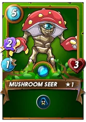 The middle of my lineup was filled with monsters for support and additional damage. Mycelic Slipspawn was actually in there as a tank - its Taunt ability would force any magic and ranged damage on the other side to target it. This would help out Venari Knifer since it ensured that it would only get hit by my opponent's front monster, which would hopefully be melee and therefore take damage from Thorns. As I mentioned at the start, I expected my opponent to bring an Earth splinter lineup, so I also choose to add Mushroom Seer. In addition to also dishing out 2 magic damage, Mushroom Seer's Silence would reduce my opponent's magic attacks. This was a key part of my endgame plan, because Silence plus Unicorn Mustang's Void would effectively reduce magic damage by 2.