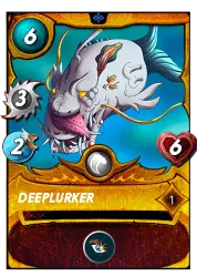 The middle of my lineup contained most of my heavy damage. Djinn Oshannus dishes out 2 magic damage per turn, and would also work well as an emergency tank. Deeplurker hits even harder with its 3 melee attack, and Opportunity ensures that it will be hitting my opponent's weakest monsters.