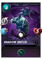 Shadow Snitch is a melee monster in the death splinter. At level 1, for the somewhat low price of 4 mana you get a 5 HP to go with 1 attack and speed. While this does sound a little underwhelming, it also has reach so it doesn't have to sit at the front and just take damage all day. It does seem to have potential as a secondary tank, which is how I'll be aiming to use it.