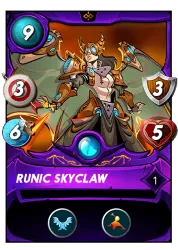 I put some serious ranged damage at the back end of my lineup. Raa hits twice per turn for 3 damage per hit, resulting in a potential SIX ranged damage per turn. Runic Skyclaw only gets 1 attacks per turn, but makes it count - with 6 speed and Snipe, Runic Skyclaw is likely to be able to land its single attack, and also has the potential to knock out some of my opponent's weaker monsters at the heart of their lineup.