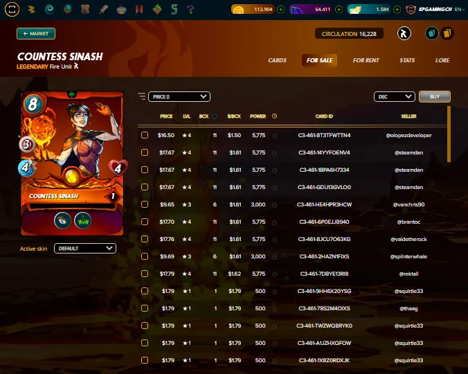 Since you would be using Countess Sinash mostly in Bronze and Silver, your options would be the 0.67 DEC for the level 1 and 1.10 DEC for the level 2. |