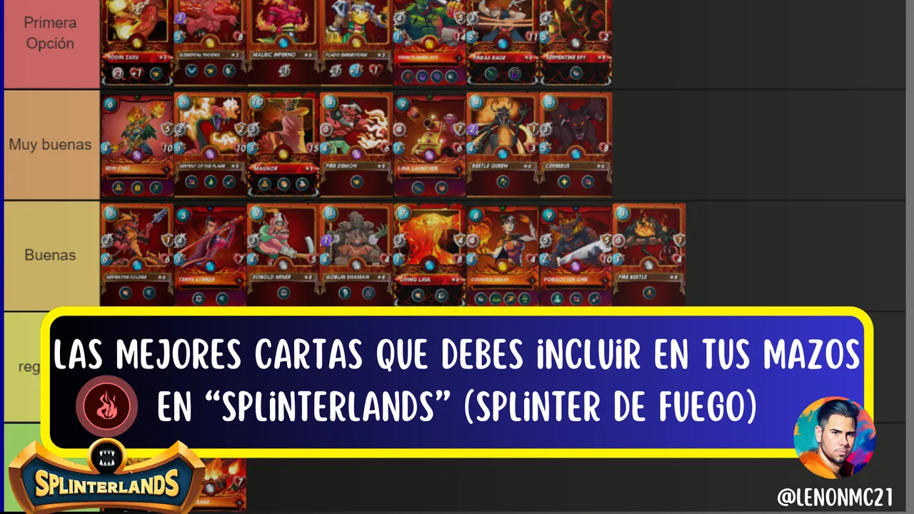 According to my experience in the game and the years I've been playing, I have collected enough information to determine which are the best cards of each "Splinter" in the game, of course, this does not mean that for other players are the best, it is simply my opinion, so, Anyway, you can leave in the comments box which are the best cards for you in the "Splinter of Fire" and why, I would like to read them, of course, well-founded answers, although if you are just starting, do not worry, just comment, I will read and I will answer you with pleasure.