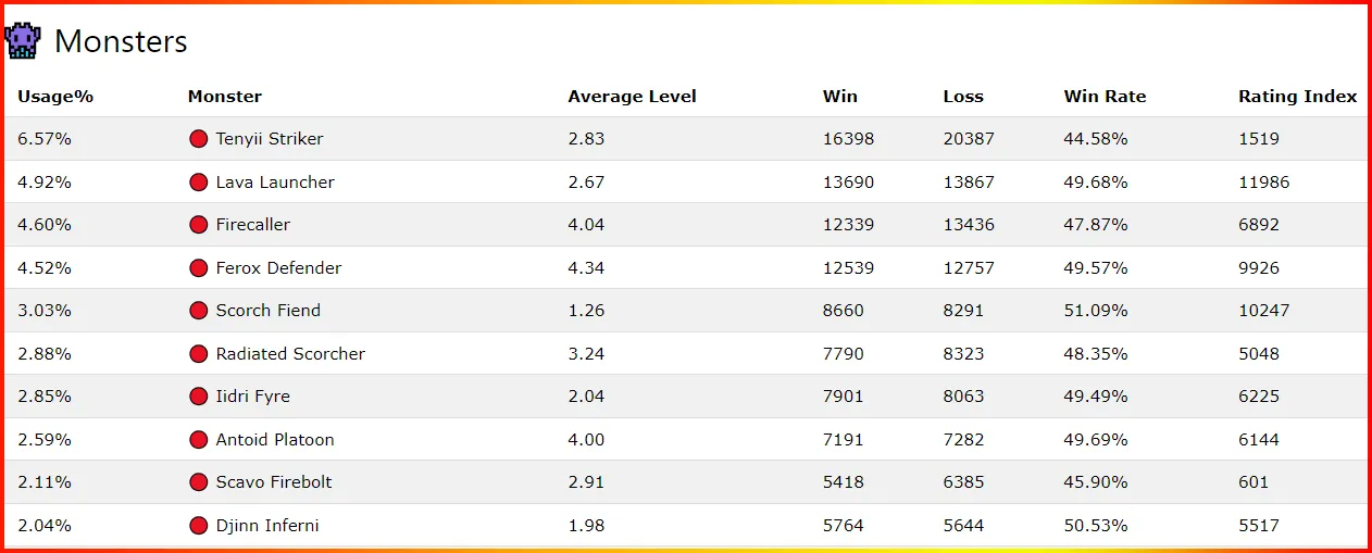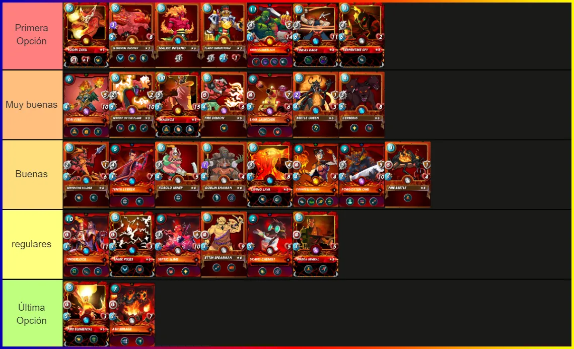 To show you what for me are the best cards, I have used the platform called "Tier Maker" with the intention of segmenting from the best, to those that for me are useful, but not so much, what I mean is that, in a scenario where I have to choose a powerful deck of cards, the cards that I put in the last line, would represent the last option that I could take in case I could not use some of the previous ones. So, as you know how it works, these are for me the best "Fire Element" cards: