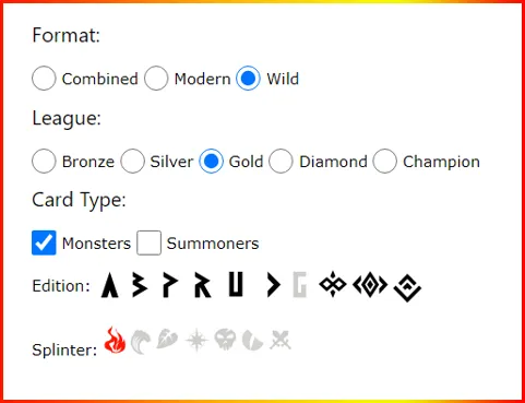 Así que, en esta oportunidad, les explicare de qué forma pueden encontrar las mejores cartas por cada “Edición” especifica y utilizar los datos que encuentren para ayudarse, además, como ya dije, también les mostrare las que para mí son las mejores cartas que se pueden utilizar para el “Splinter de Fuego”, esto lo hare por elementos, ya que no quiero hacer de este post algo muy largo, ya que, si abarco todos los equipos, se tomarían un buen rato leyendo y no quiero aburrirlos, a pesar de que la información puede serles de mucha ayuda, prefiero dividirlo en varias partes, así que, espero que le saquen el mayor provecho posible a esta información, mi intención es ayudar a la comunidad a comprender el juego, por lo que, impartiendo educación, hago mi parte.