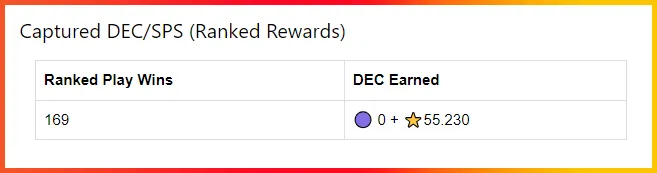 As you can see in the picture, last season I managed to earn a total of 55,230 SPS per battle won in the "Gold" league wild format, let's assume I played all 14 days, since I don't usually play the first day, that means, I earned per day a total of 3,945 SPS, in fact, per battle won before the changes of the ranked system, I am sure I earned around 0.1 SPS approximately in the "Gold" league with a multiplier between 10x and 12x.