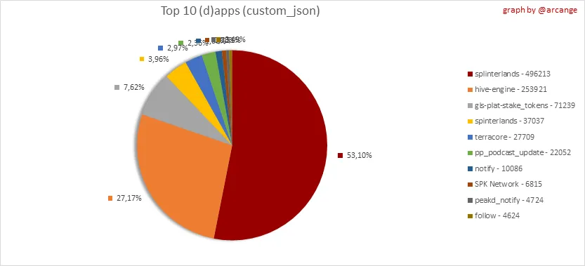 This graph shows which applications generate the most activity (custom_json operations) on the blockchain.