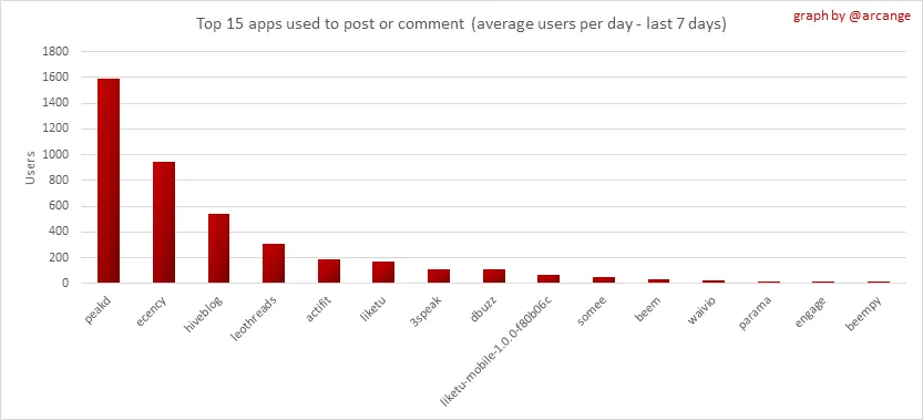 This graph shows which applications are most used to publish posts and comments. Please note that the same user can use several different applications.
