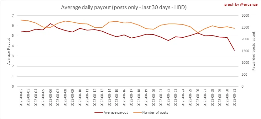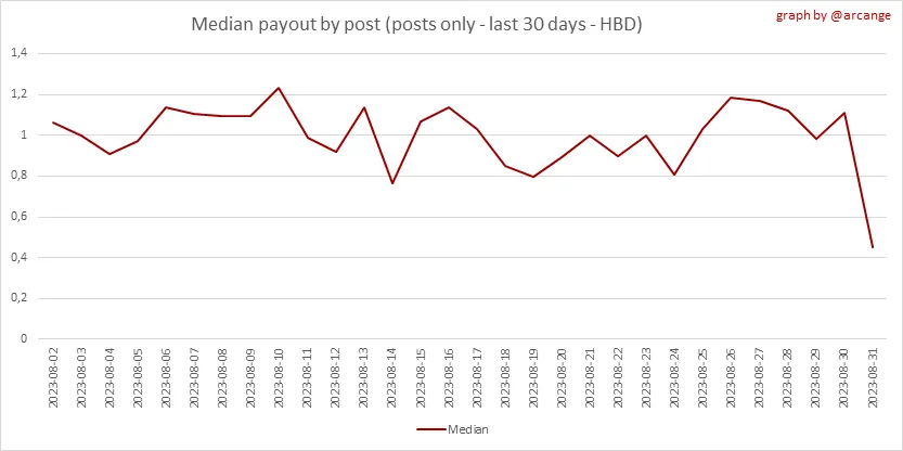 These graphs show the average and median payout per post for the last 30 days.