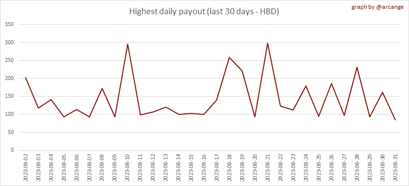 This graph shows the highest reward paid on a post (or comment) for the last 30 days.