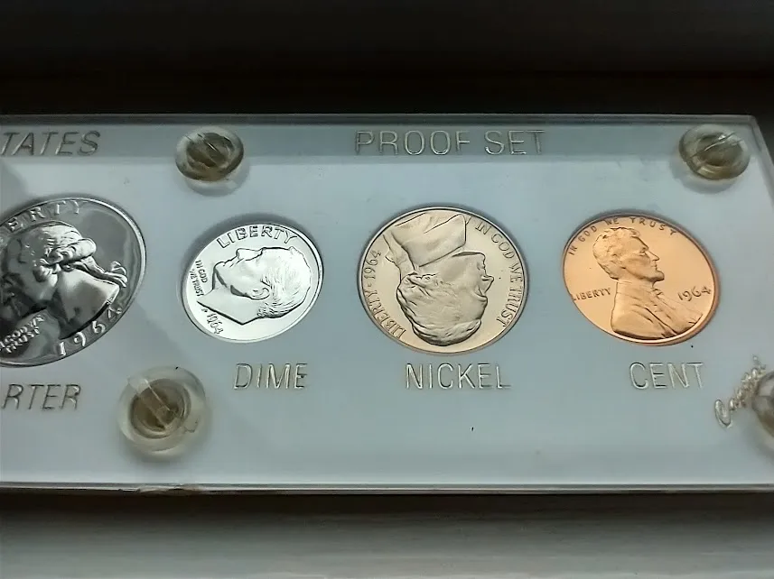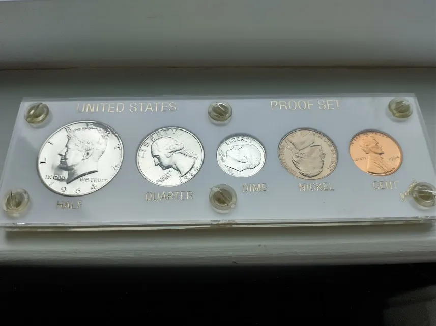 My contribution to the SGS Monster Raffle is a 1964 Proof set - Silver Proof Half, quarter and dime along with a Proof Nickel and Penny.