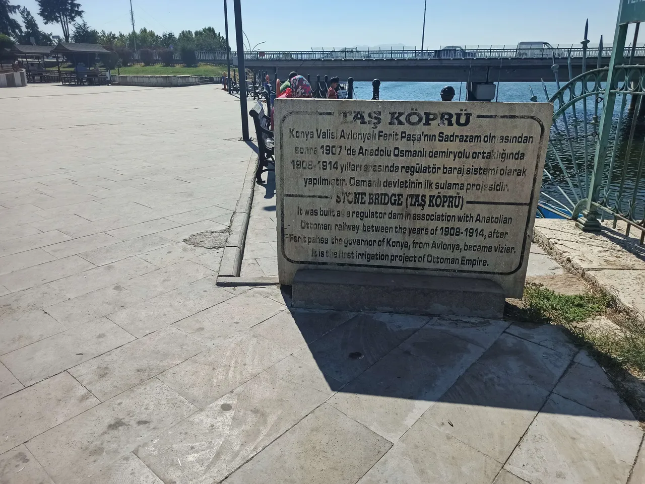 Dondurmalarımızı yerken kız arkadaşıma şehrin gezilecek tarihi yerlerinin olup olmadığını sorduğumda birkaç yer söyledi. Uzak değilse buraları gezmek istediğimi söylediğimde hepsinin yakın olduğunu öğrendik. İlk önce en yakınımızda bulunan tarihi Taş Köprüye gittik. 🌉Tarihi olan tüm yapılara hayran olduğum için bu köprününde farklı açılardan fotoğrafını karelemek istedim.🌉📸 Köprünün hemen altından geçen Beyşehir Gölü adeta bu köprüye can vermiş gibi gözüküyor. Hemen önünde yazan bilgilendirme panosunda tarihi ile ilgili birkaç bilgi yer alıyordu. Taş Köprü, Konya Valisi Avlonyalı Ferit Paşa'nın sadrazam olmasından sonra 1907'de Anadolu Osmanlı demiryolu ortaklığında 1908-1914 yılları arasında regülatör baraj sistemi olarak yapılmış. Burası Osmanlı Devleti'nin ilk sulama projesiymiş. Bu detayları öğrenmek benim için kıymetliydi. Kız arkadaşım evlerinin buraya çok yakın olduğunu ve beni annesiyle tanıştırmak istediğini söyledi. Annesi çok tatlı ve cana yakın biriydi, bana burayı beğenip beğendiğimi sordu bende tabiki çok beğendiğimi söyledim.😃