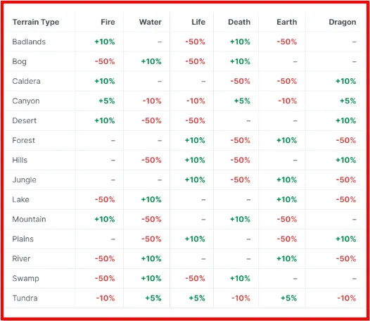 Por ultimo y no menos importante, cada terreno en Praetoria, tiene sus propias carectaristicas que estan asociadas a los elementos que ya conocemos en el juego, por lo que, antes de iniciar con la producción, debemos fijarnos bien en que tipo de terreno esta nuestra parcela, esto nos ayudara a colocar las cartas correctas (los trabajores adecuados) para explorar ese tipo de terrenos en particular.