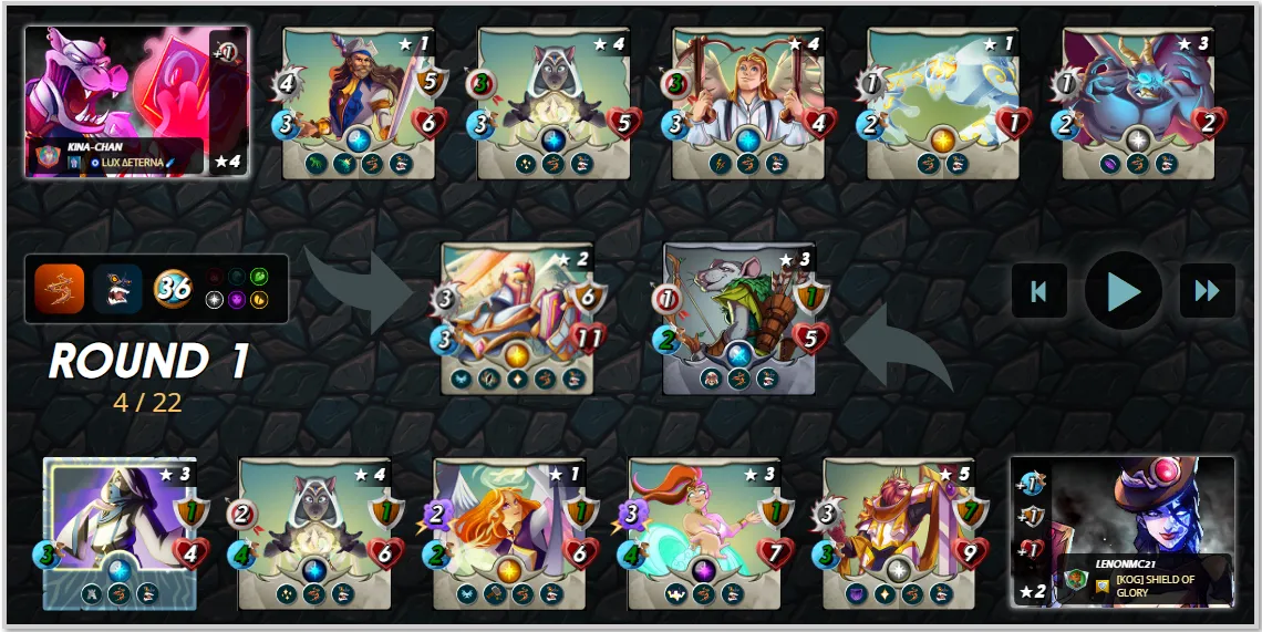 On the other hand; and to finish, if you look at my opponent's lineup, he wasted 2 of his cards, which were the last ones he placed in his backline without really having any apparent utility to support the rest of his cards, which were very good for the rules and the conditions we had on the field, maybe with a couple of good cards in these positions, the battle would have been even more interesting.