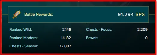 If you see in the image, there is a big difference between the SPS generated in that last day in the "Wild" format, compared to the "Modern", this means that, this leaving to perceive about 11,986 SPS per day, as long as I only play in silver it is worth noting, since, if I played in "Gold" in the modern format, the gain per battle series higher and already in silver, I was gaining between 0. 9 and 1 SPS per battle, this was the average, and in Gold for the Wild, it is far from reaching that amount, at least with the SPS I currently have, so, as you can see, there are powerful reasons why playing in "Modern" is what suits me best, both to grow as a player, as in rewards and competition.