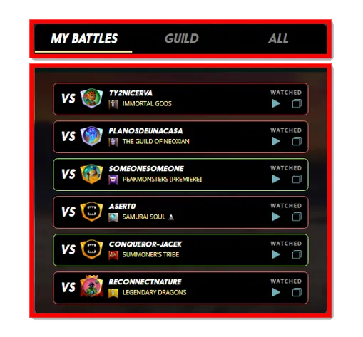 What I didn't know was that we were already in "Tier 5"; It just so happens that today, I was away from home, of course, I had entered the game a few days ago, but, I had not noticed the floating screen that warns me about how the Brawl battles are going, but, 2 of the guild leaders told me that I had a "Fray", so I entered immediately and it turns out that there were 3 hours left to send my battles, So I returned home as soon as possible, once I arrived, I went to "Peakmonsters" and rented some cards to improve my deck, since, the "Guilds" that are in "Tier 5", host practically the best players in the game, so, after so much time, I had to prepare myself well.