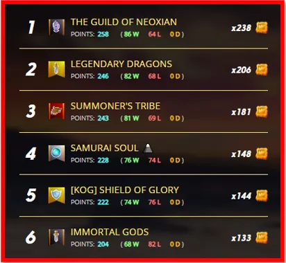 Resumen de batallas en el “Tier 5” + Gremios participantes