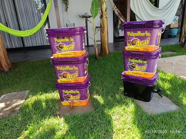 The upper pot is responsible for receiving the organic waste generated by the house. The medium pot contains the oldest waste and is already in an advanced state of decomposition. The base pot receives the slurry, which is the liquid part of the process.