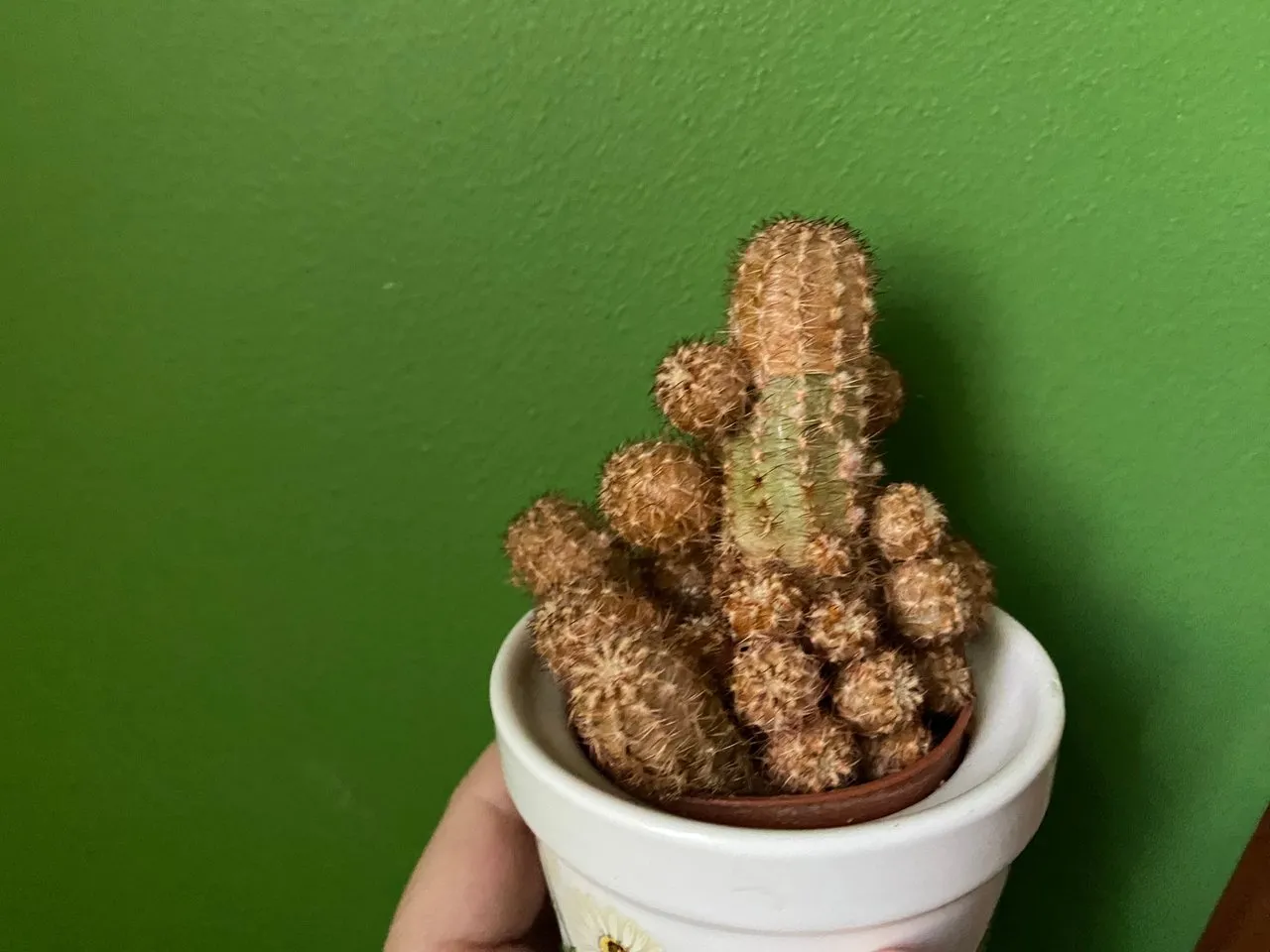Which reminds me, that I havenāt seen any blooms this year yet! Last winter he got a bit cold sitting close to unheated window and its green colour faded into brown. I moved it further away from the window and it is still #alive and growing tiny white balls which might be new buds or new pups, so Iām hoping it will pull through.