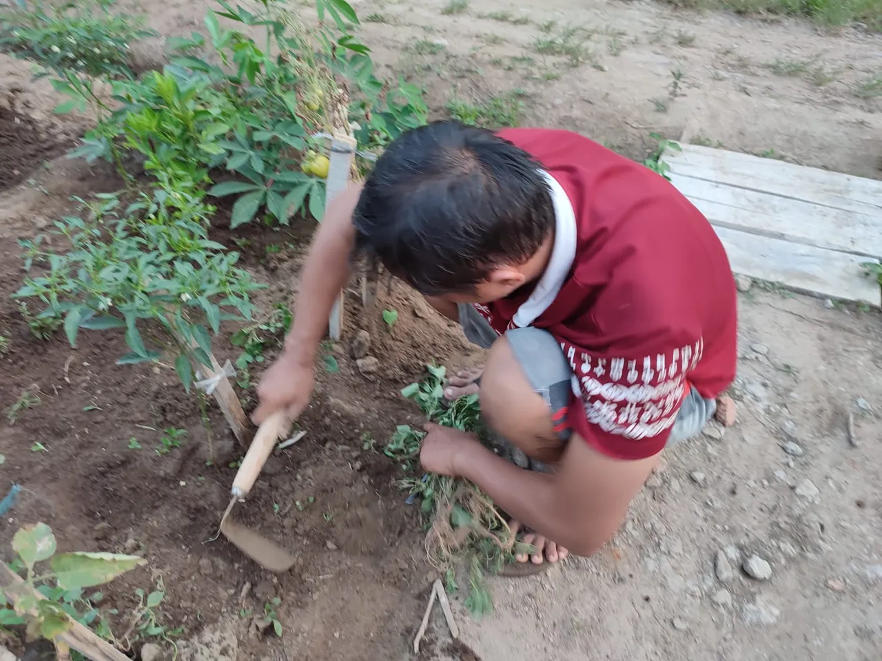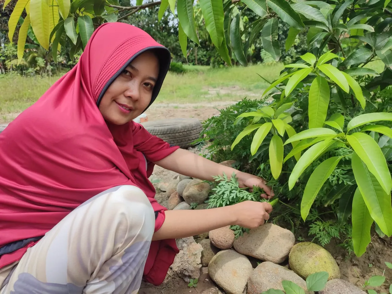 And look at the number of my plants, there are eggplants that start learning to bear fruit. Chilies that are starting to learn to bear fruit, mangoes and kedondongs that are starting to see their fruit buds. Wild Spinach and many more. We deliberately plant these plants for our own consumption and to meet our daily vegetable needs. Even now we are growing sweet potatoes and cassava for vegetables and fruit. Every evening when my husband and I take care of our plants, I always tell stories about that childhood incident, it looks so ridiculous.. ha...ha.. how about you. Have you ever experienced this as a child? Greetings from us tOmi and maya from the city of Binjai Indonesia and I invite @umirais to take part in this challenge