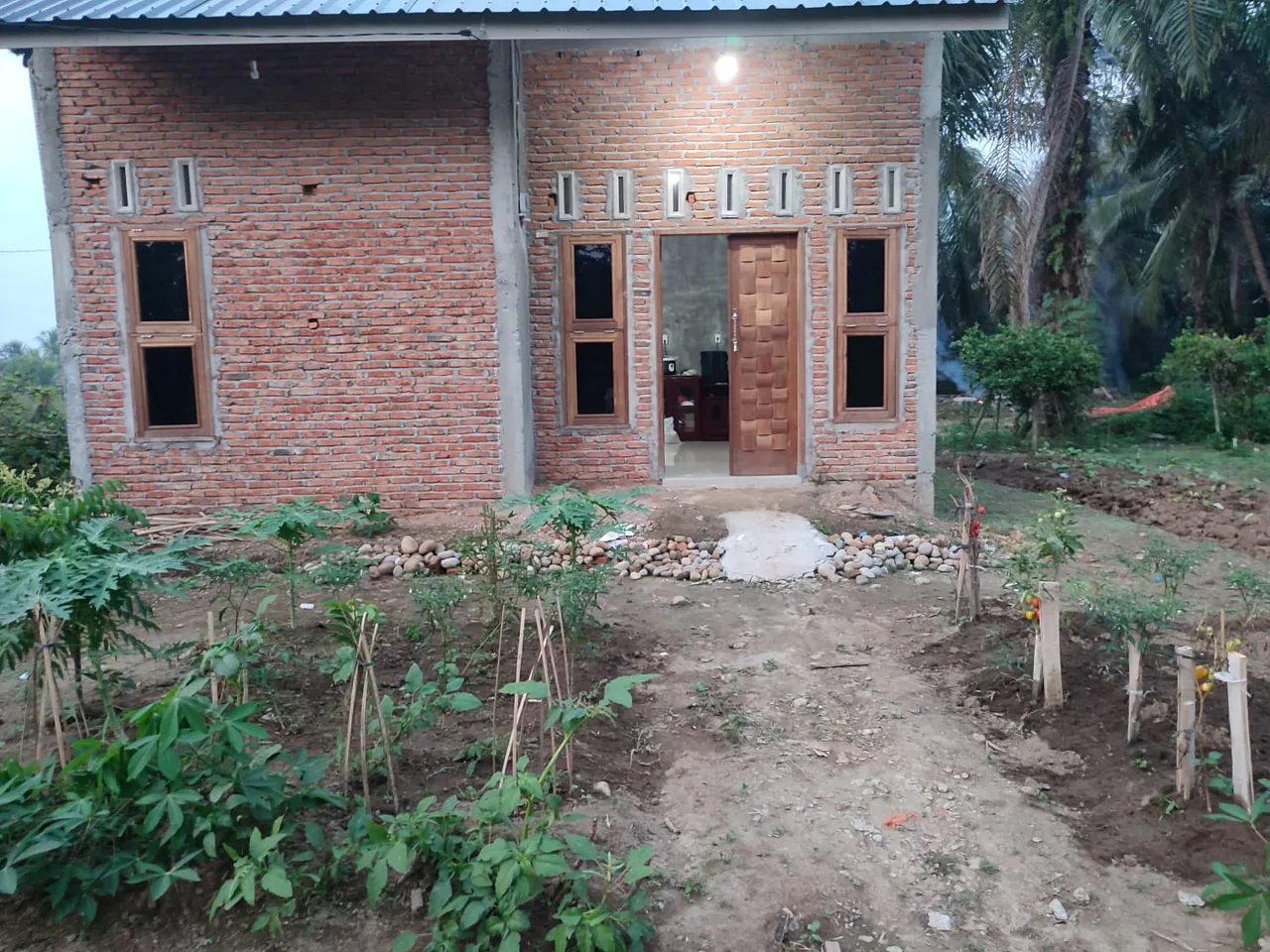 And here I am now in my new house that I have just lived in for 1 week. Even though I've only been in it for a week, look at my garden. Already a lot of plants right? We planted these plants ourselves right where the first stone was laid for our house, and when our house was finished, our plants were also big, before building a house because of limited funds, we also started farming on this land to simply learn and adapt how to become farmers and get used to the soil so as not exposed to fertilizers.