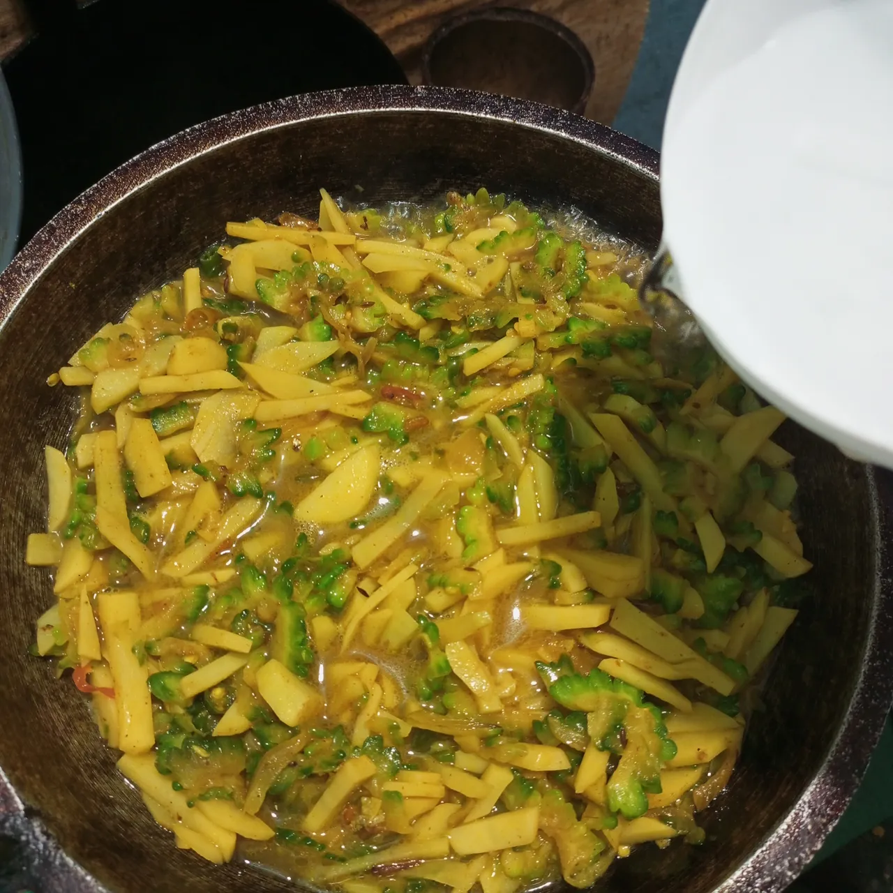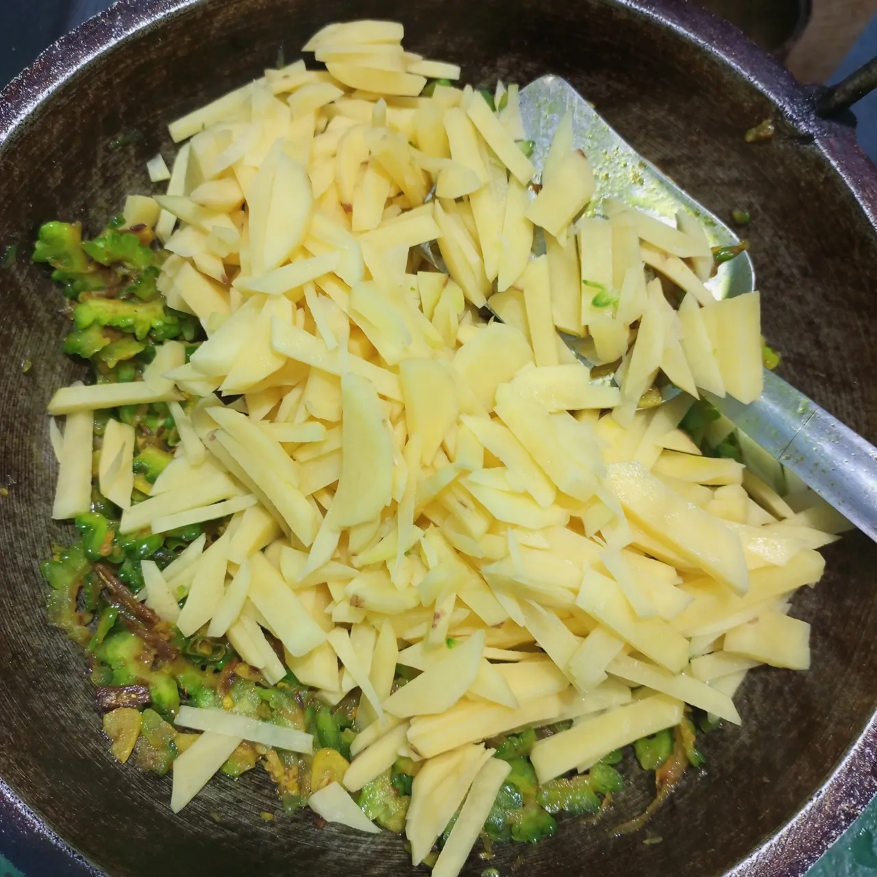 Then we add potatoes to the curry. Must be well combined with potatoes. I know the curry taste is more incomparable with good combination.