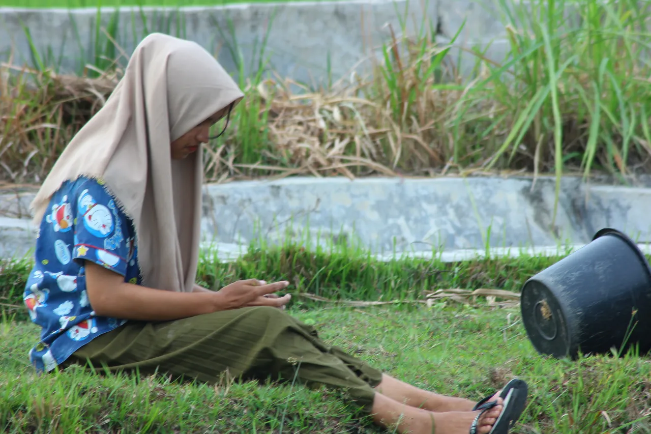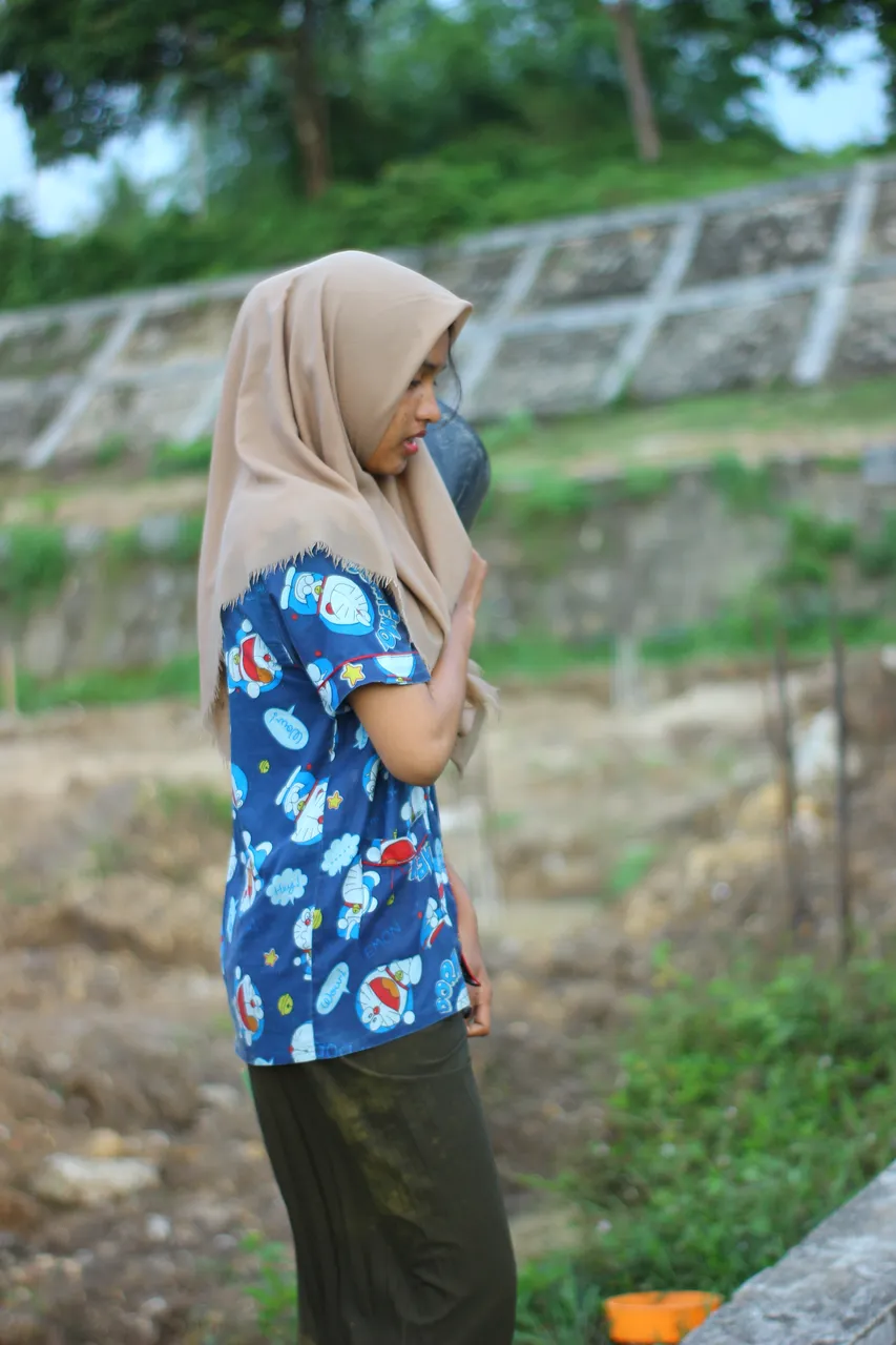 At that time I saw several people doing activities, both the activity of building a pond in the ready-to-work area and also the activities of the practical girls who were giving feed and then they were on the pond embankment. I often take pictures of them because they are so close to me and we also often joke together both with the people who are working on the pool where I work and also with the practice girls. Usually in the afternoon we sit and chat together at the place I work. I am also quite familiar with them so that when I take their pictures it certainly doesn't seem like something out of the ordinary. There was no teenager sitting near my vehicle and I also took a picture of him.