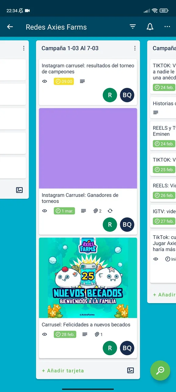 Using trello as a planning tool, setting a date and time for the publications to be posted to generate reminders and not to overlook anything. In the case of Instagram and twitter, writing here either ideas or the caption of the publications, which is a matter of copy and paste, has been a tool that has helped me a lot so that my week is not so loaded and to have an agenda with a reminder of what I have to post. Trello is a tool that I got to know thanks to my new boss and I find it very useful when it comes to planning, I love it