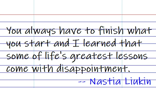 You always have to finish what you start and I learned that some of life's greatest lessons come with disappointment.