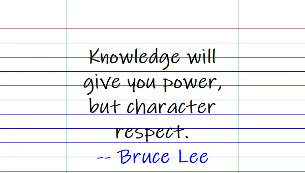 Knowledge will give you power, but good character will give you respect. While not as brief as the wording Bruce Lee himself had used for this quote, it leaves no doubt as to what he meant.