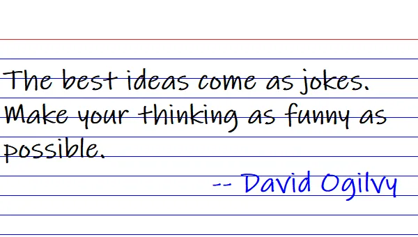 The best ideas come as jokes. Make your thinking as funny as possible.