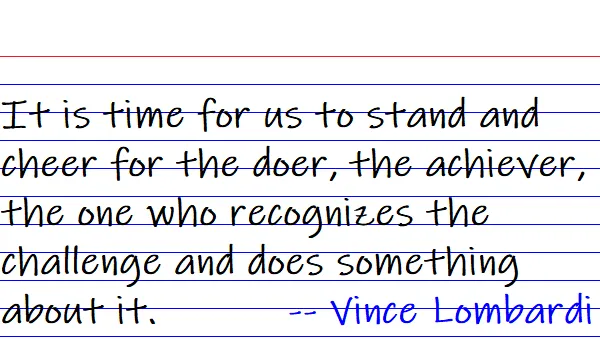 It is time for us to stand and cheer for the doer, the achiever, the one who recognizes the challenge and does something about it.