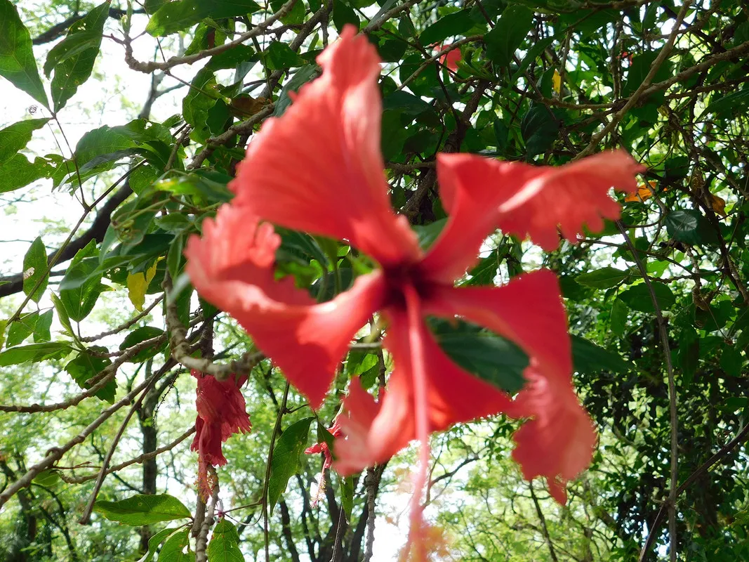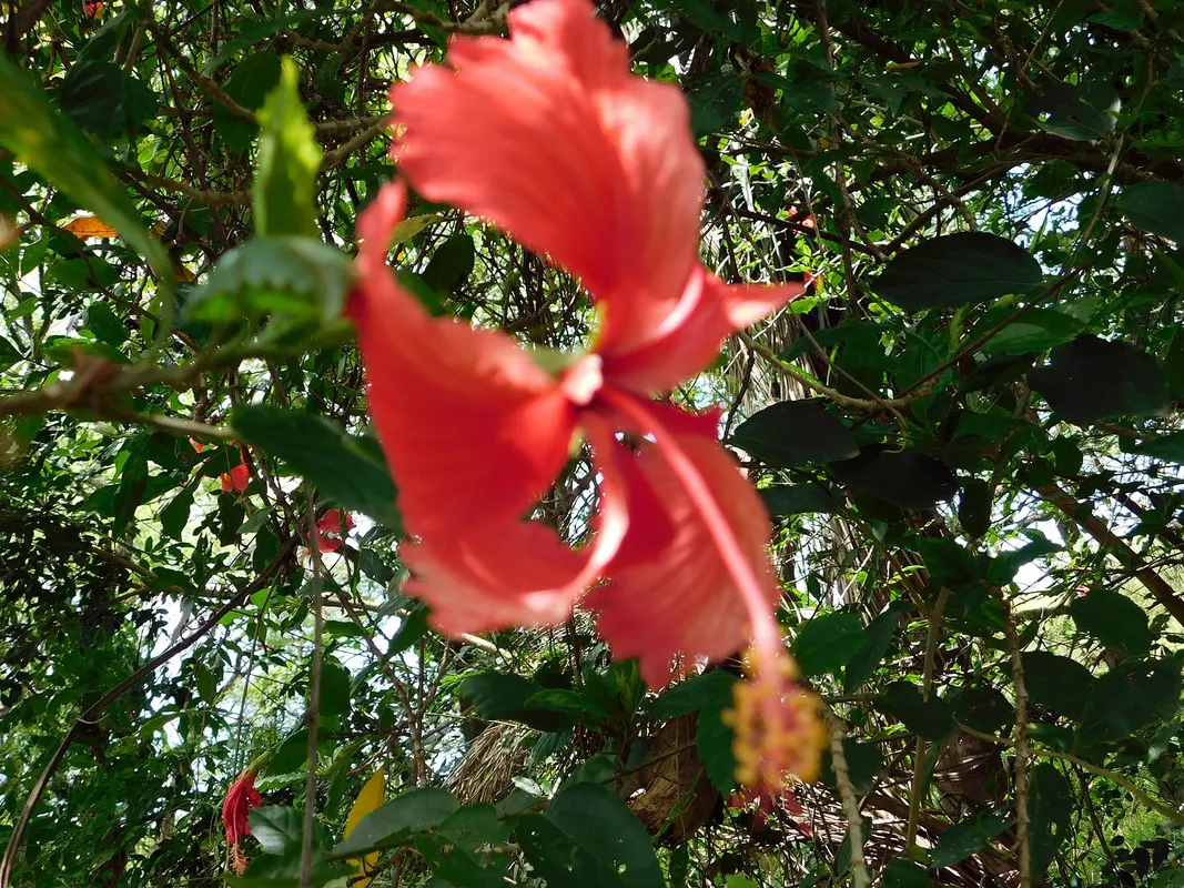 Once I verified that the day was ideal to visit the property, I started my walk, and in a few minutes I was entering the reserve. I took one of the trails that I usually walk, and at a trail junction I discovered this ¨Hibiscus¨ plant, I don't know how I had not seen it on other walks, because as you can see it is really a huge plant, on the go I took our camera I have taken several shots; In general, when I walk I try not to stop, since it is very difficult for me to get back into the rhythm, that is why you will see the photos a little shaky