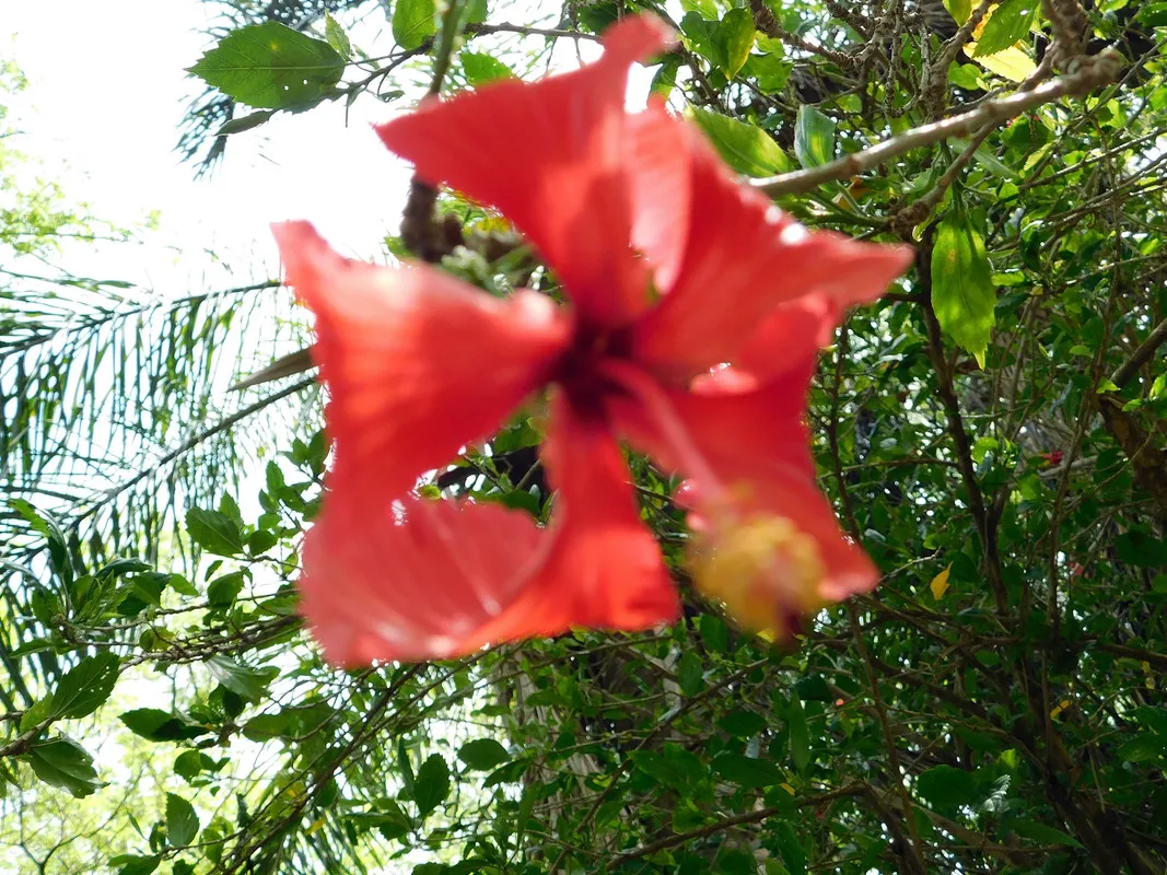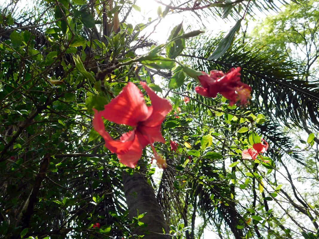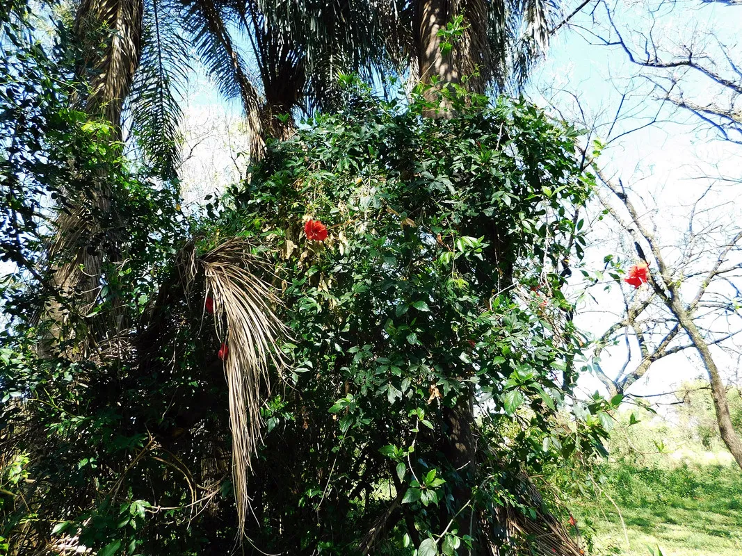 Una vez que comprobé que el día era ideal para visitar el predio emprendí mi caminata, y en unos cuantos minutos estaba ingresando a la reserva. Tome unos de los senderos que acostumbro a caminar, y en un cruce de senderos descubrí esta planta de ¨Hibiscus¨, no sé cómo en otras caminatas no lo había visto, porque como pueden ver es realmente una planta enorme, sobre la marcha tome nuestra cámara he hice varios disparos; por lo general cuando camino trato de no detenerme, ya que me cuesta mucho volver a retomar el ritmo, es por eso que verán las fotografías un poco movidas