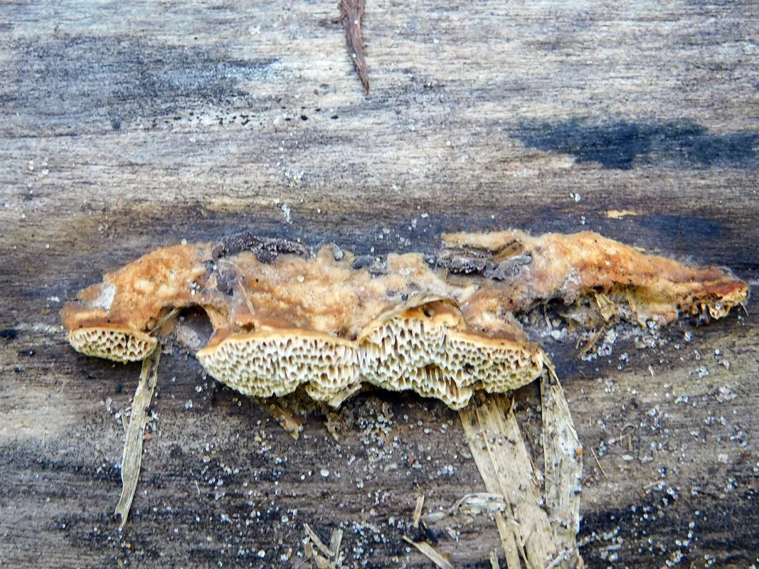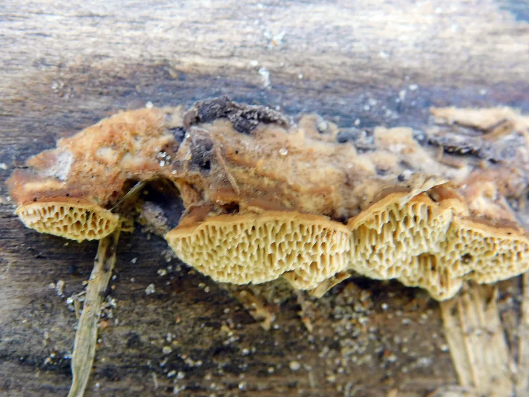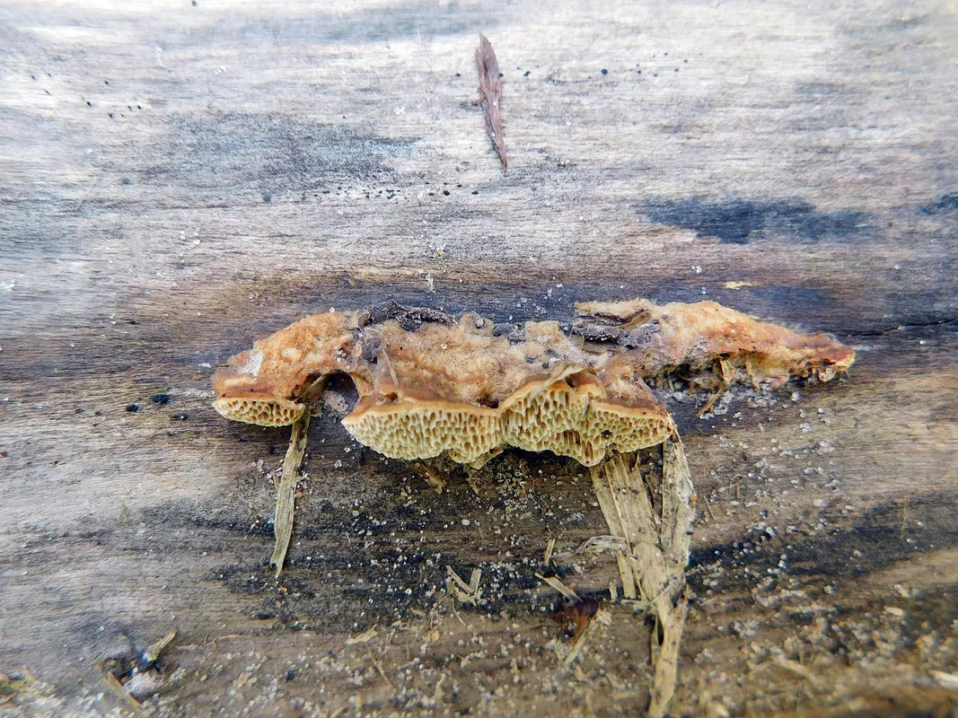 La otra variedad de hongo que he hallado es un tipo de hongo que lo veo con mucha frecuencia, aunque debo de admitir que haces varias semanas no me cruzaba con ellos, por lo que fue una sorpresa volver a verlos. Se trata de esta variedad conocida como ¨Neolentinus¨ ¨lepideus¨: Un hermoso hongo con un ¨sombrero¨ inconfundible, lo que lo hace único son sus pequeñas manchas que parecen en tres d, que te da esa sensación que si pasas tus manos sobre ellos podrás sentir el relieve