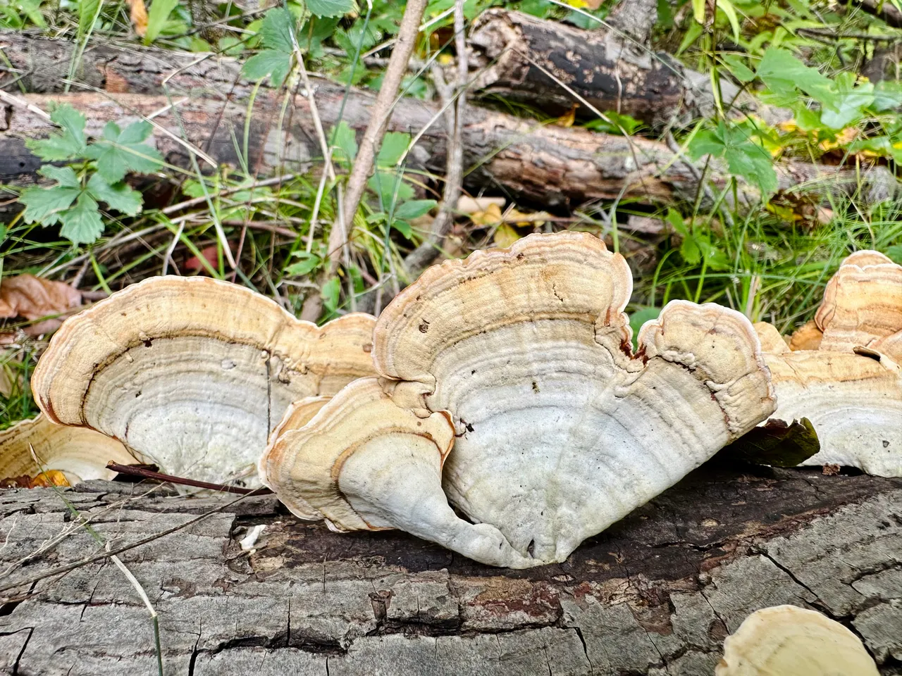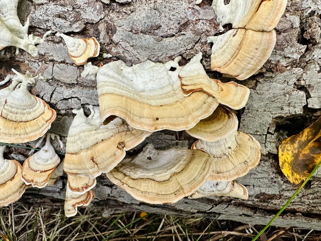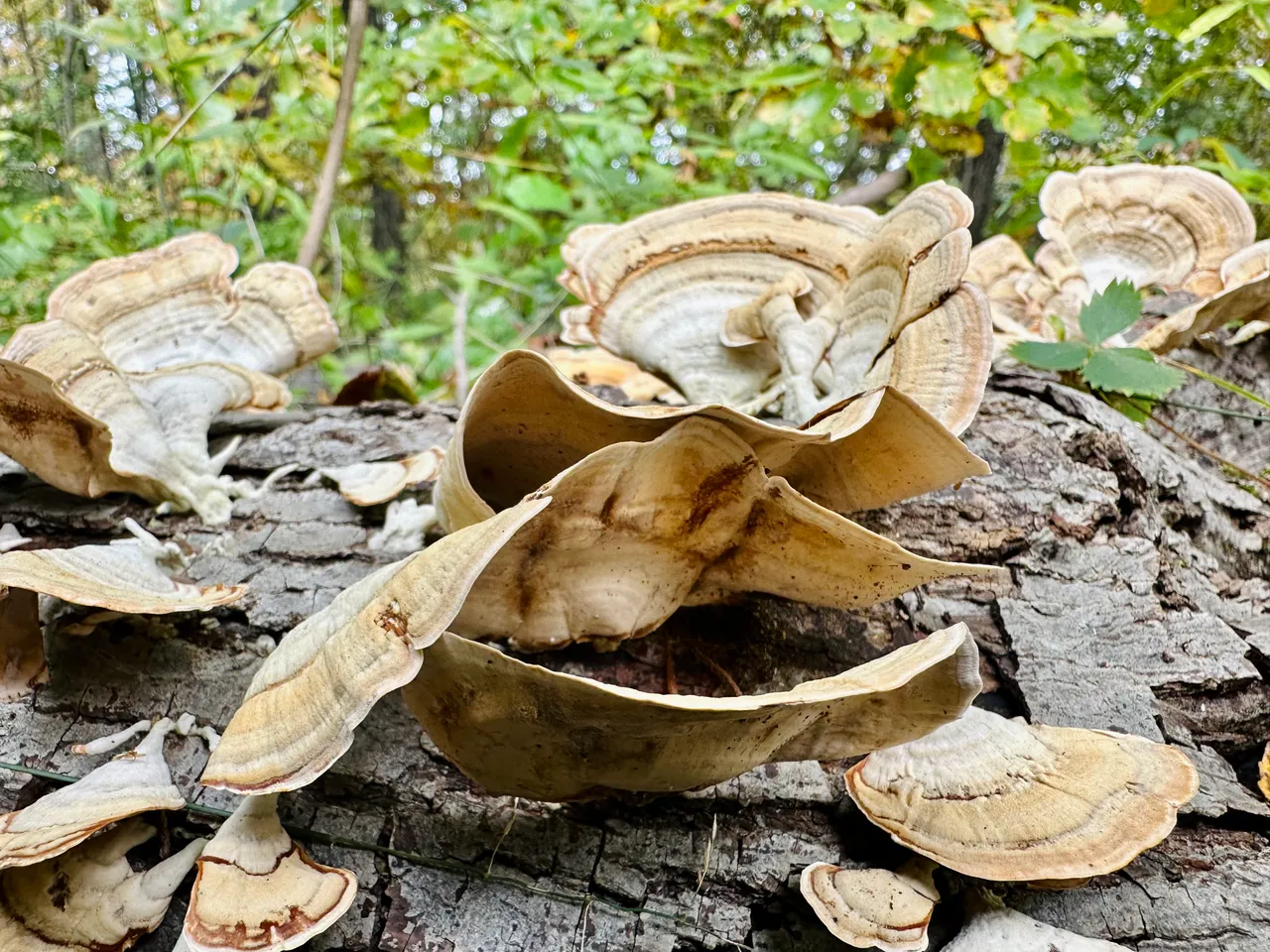 There was a tree laying on the ground just covered with these still intact and reasonably fresh mushrooms.